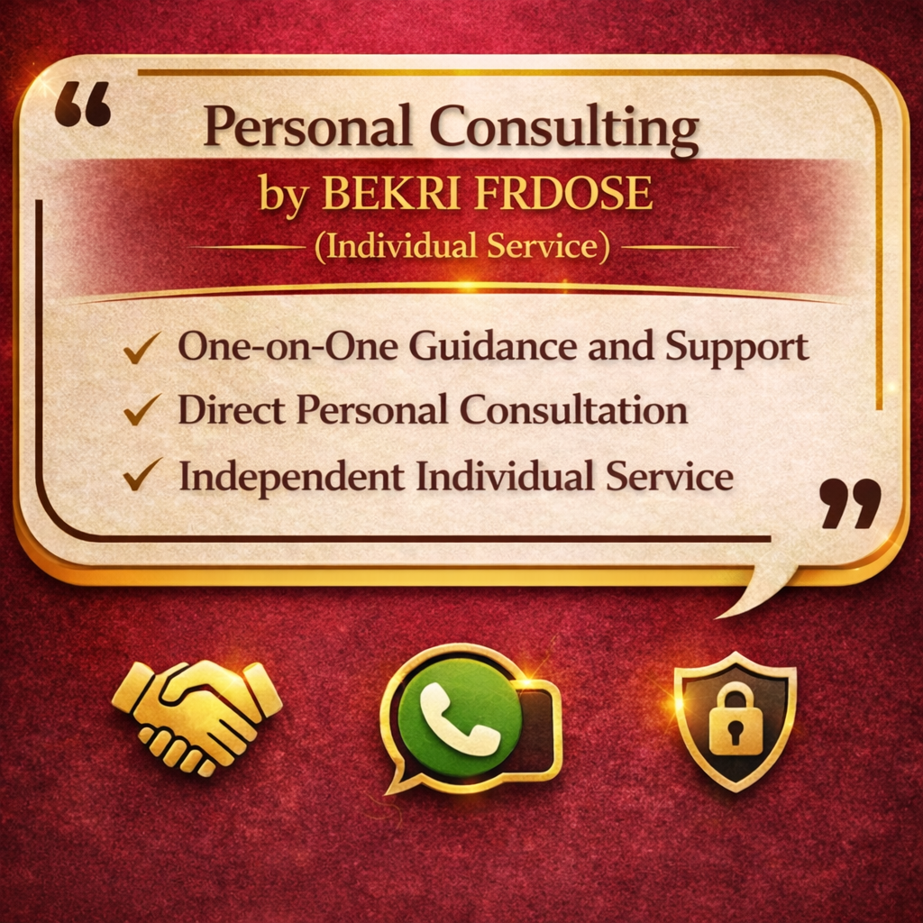 Welcome to my website. My name is BEKRI FRDOSE , and I provide personal, one-on-one consulting services as an independent individual. I work directly with clients to offer clear guidance and practical advice based on their needs. My goal is to help individuals make better decisions through personalized support and direct communication. All services are provided personally by me, without any company, organization, or third-party involvement. I focus on professionalism, confidentiality, and building trust with every client.